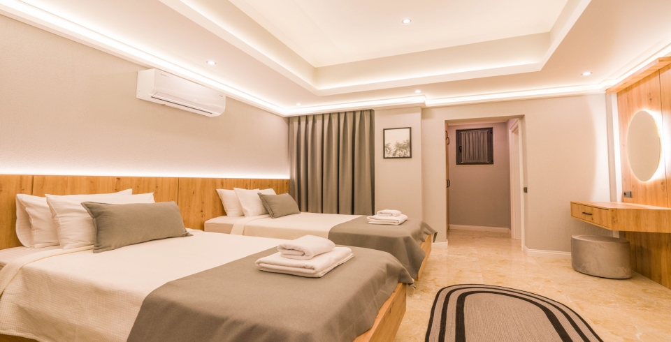 3. Yatak Odası : İki adet tek kişilik yatak, klima, elbise dolabı, komodin, makyaj masası, banyo ve tuvalet bulunmaktadır.