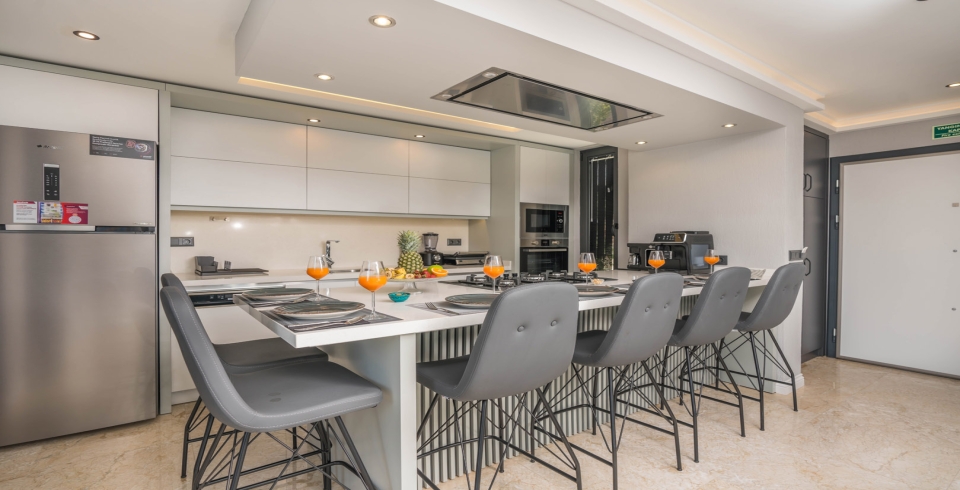 Mutfak : Evinizin mutfağını aratmayacak Amerikan mutfak içerisinde buzdolabı, bulaşık makinesi, çamaşır makinesi, ocak, fırın, su ısıtıcısı, tost makinesi, yemek masası, yemek takımı ve yemek pişirme araç gereçleri yer almaktadır.