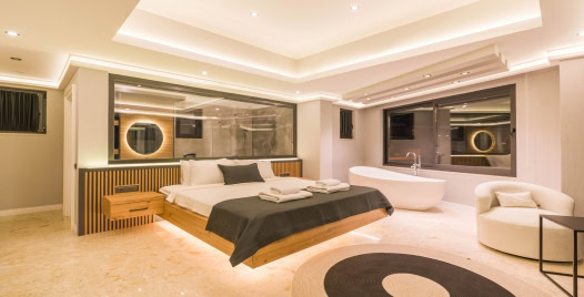 Salon : Modern ve lüks dizayna sahip salon içerisinde konforlu oturma grubu, TV, DVD oynatıcı, klima ve internet yer almaktadır.