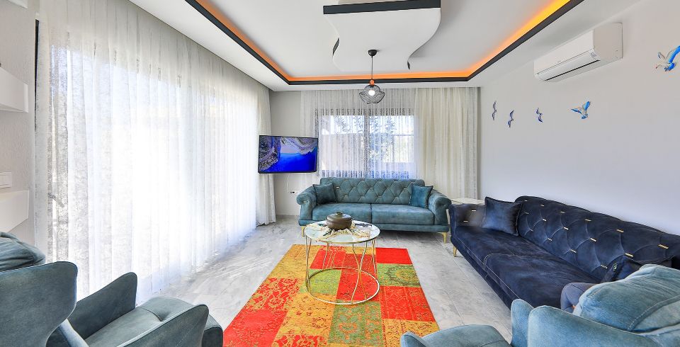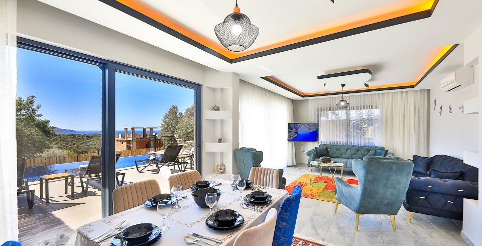 Salon: Salonda klima uydu alıcı, TV, DVD Player, oturma grubu, koltuğu, lavabo yer almaktadır. Salon havuz katındadır. En üst katta dinlenmek ve güneşlenmek için çok geniş bir seyir terası daha vardır. Bu alanda da oturma gurubu, masa ve sandalye bulunur.