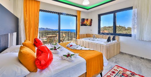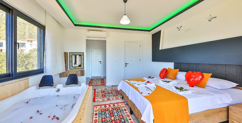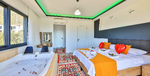 1. Yatak Odası: Oda içerisinde 1 adet çift kişilik yatak, jakuzi gardırop, komodin, banyo-WC yer almaktadır.