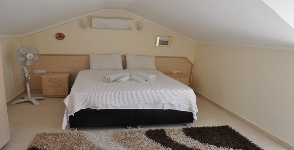 1.Yatak Odası: Çift kişilik yatak, klima,elbise dolabı, makyaj masası,tuvalet ve banyo bulunmaktadır.