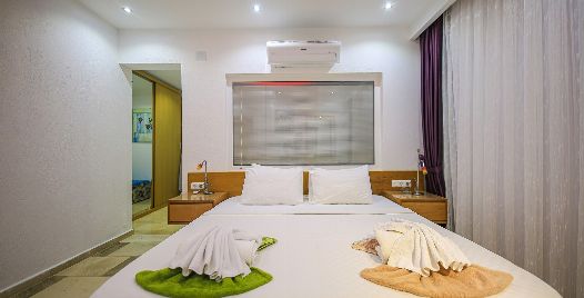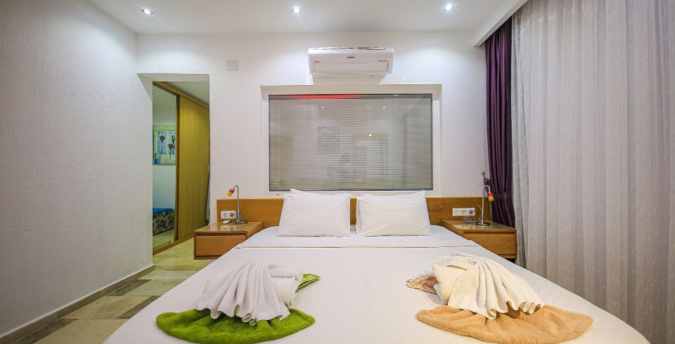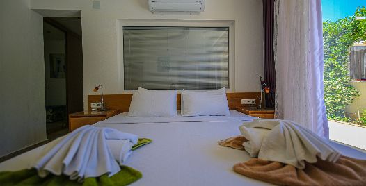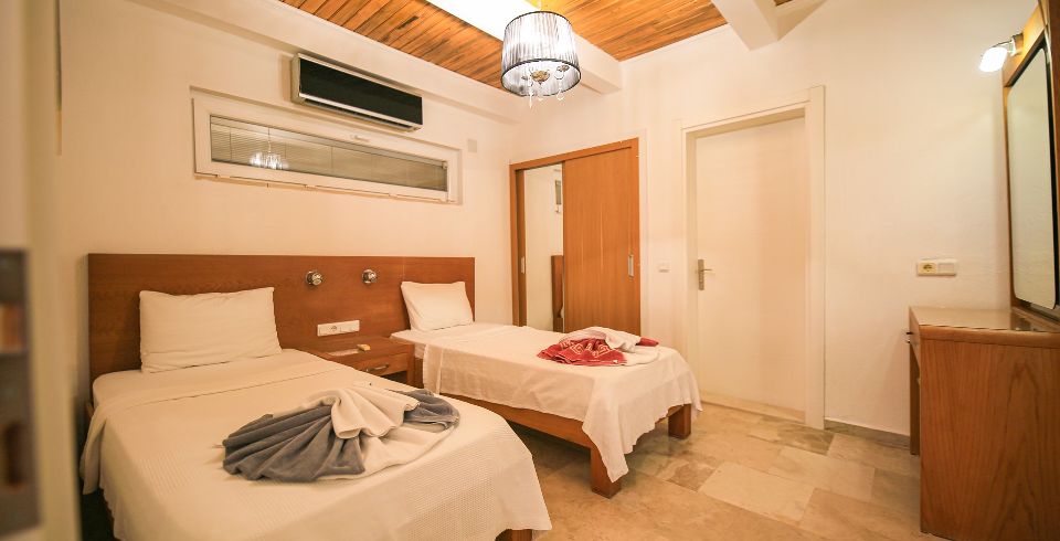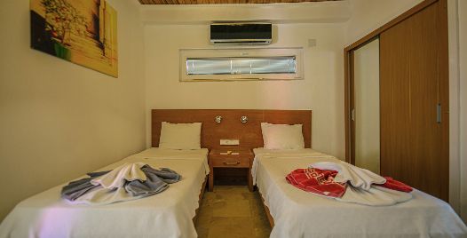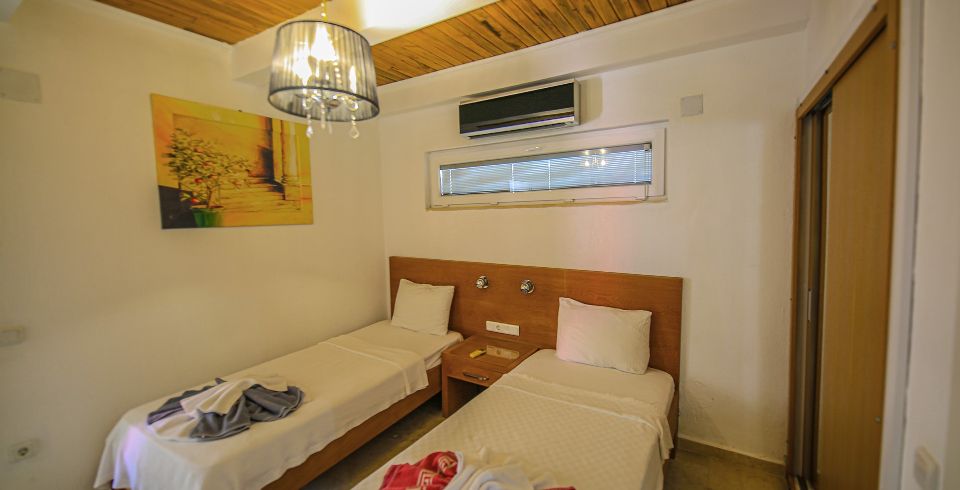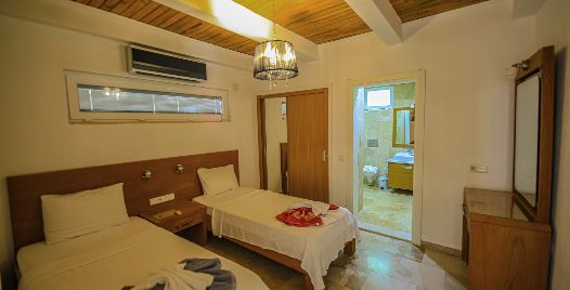 2. Yatak Odası : 2 adet tek kişilik yatak, klima, elbise dolabı, makyaj masası, banyo ve lavabo bulunmaktadır.