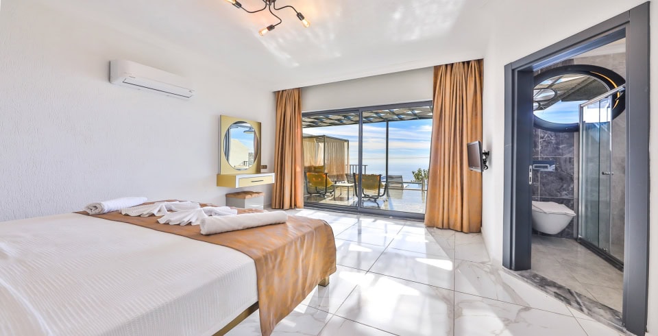 3.Yatak Odası : Aile Yatak Odasında; 1 adet çift kişilik yatak, Makyaj masası, Komodin, Klima, Elbise dolabı, Banyo ve Havuz Terasına çıkış bulunmaktadır.
