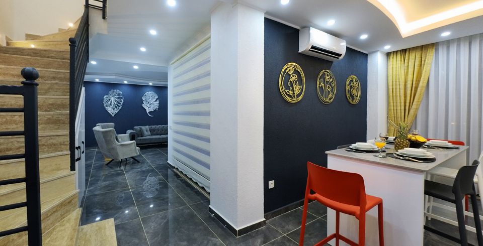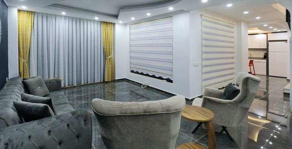 Salon : Salon içerisinde oturma grubu, TV, klima, sehpa bulunmaktadır. Havuz terasına çıkış yapılabilmektedir.