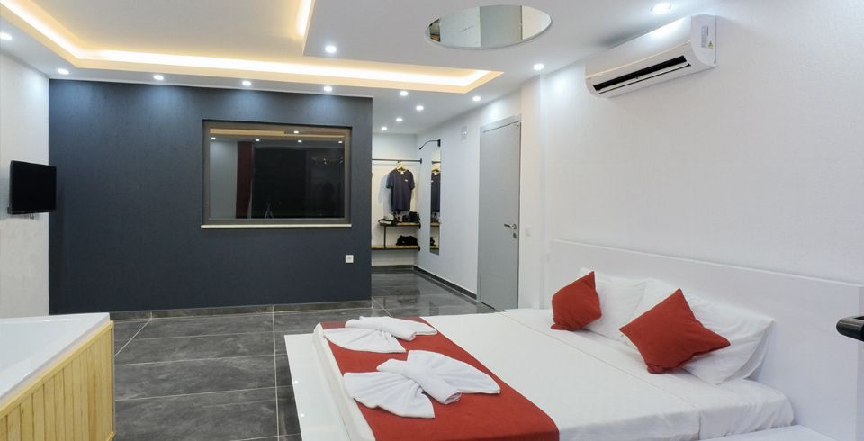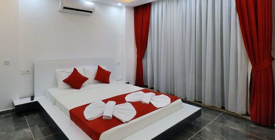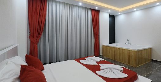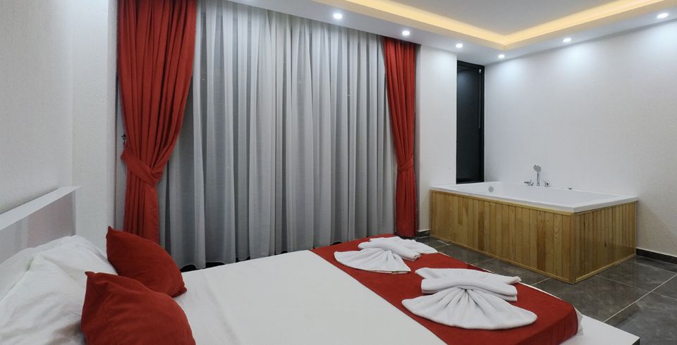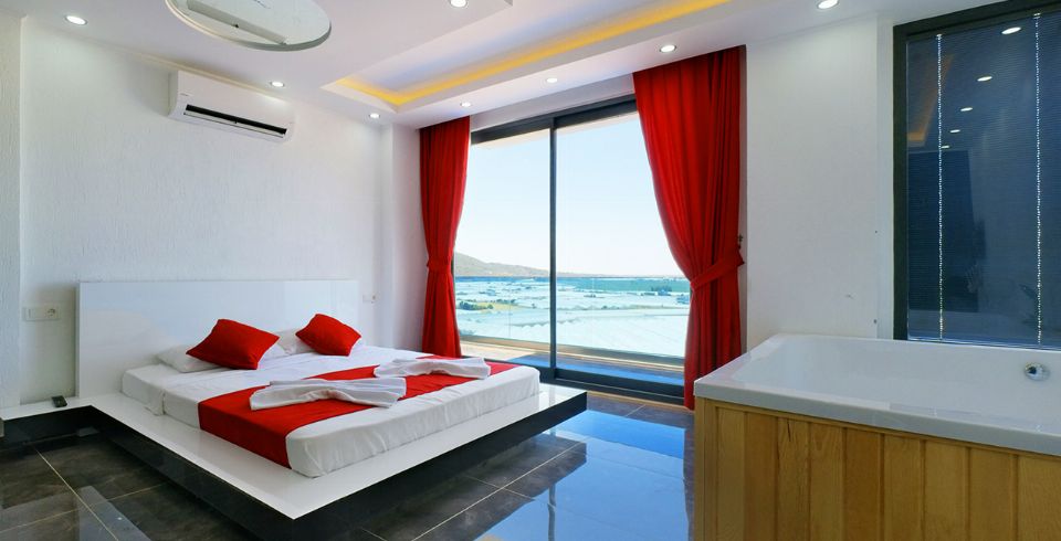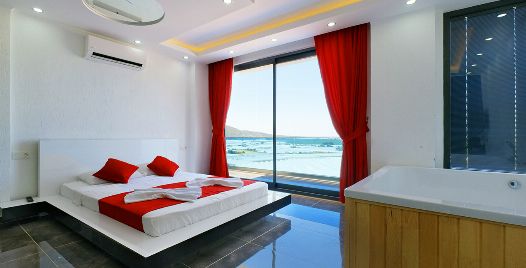 1. Yatak Odası : 1 adet çift kişilik yatak, klima, komodin, elbise dolabı, makyaj masası, jakuzi, yüzme havuzu, banyo ve tuvalet bulunmaktadır.