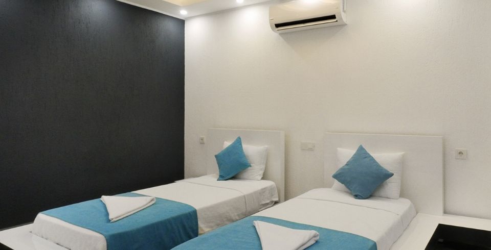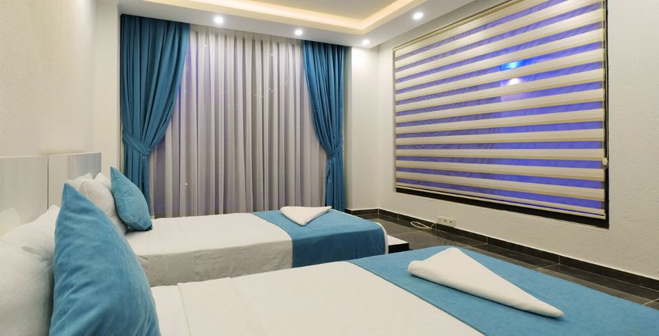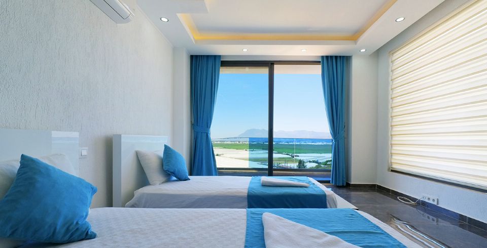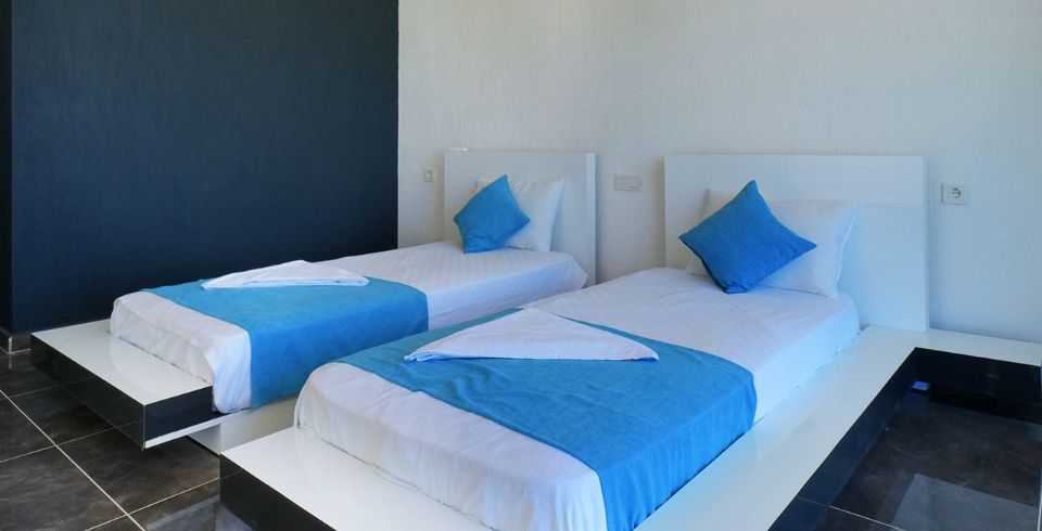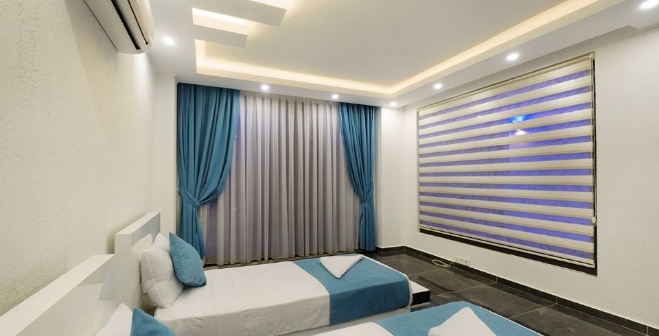 2. Yatak Odası : 2 adet tek kişilik yatak, klima, komodin, elbise dolabı, makyaj masası, banyo ve tuvalet bulunmaktadır. Havuz terasına çıkış yapılabilmektedir.