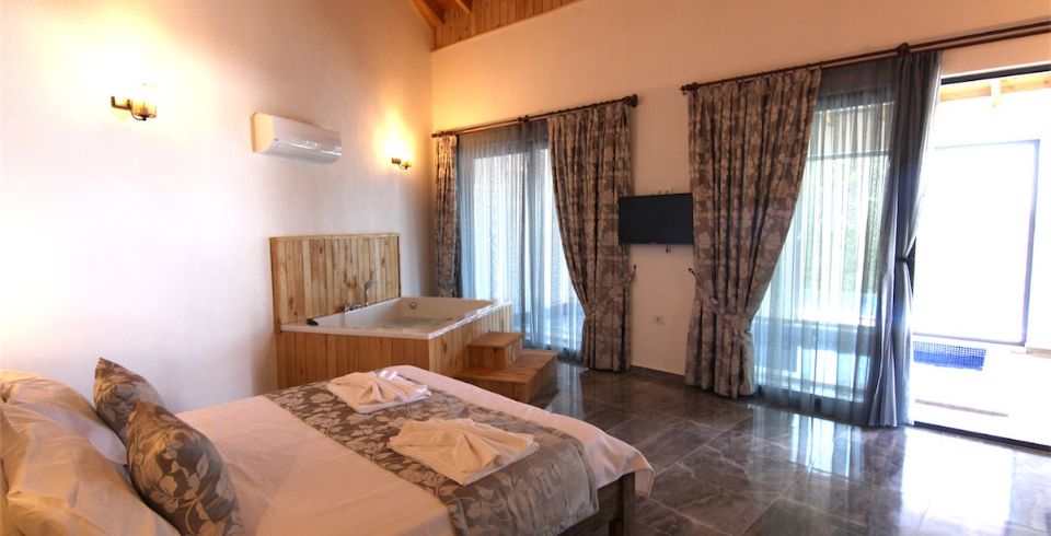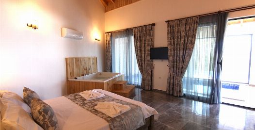 1. Yatak Odası : 1 adet çift kişilik yatak, klima, jakuzi, komodin, elbise dolabı, makyaj masası, banyo ve lavabo bulunmaktadır.