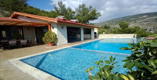 Villa Myra, Kalkan İslamlar bölgesinde bulunuyor olup 6 kişilik kapasitesi ile 3 adet yatak odası ve 3 banyo bulunmaktadır. Harika bir tasarıma sahip villamız aynı zamanda muhafazakâr villa arasındadır. Bu sayede muhafazakâr aileler için özel bir tatil imkânı sunar. Deniz ve doğa manzarası ile beraber geniş bir havuzu bulunmaktadır ve villa içerisinde de ısıtmalı havuz bulunmaktadır. Bu sayede yaz kış tatilinizi yapabilirsiniz. Villa içerisinde ihtiyacınız olan her şey bulunuyor olup jakuzide bulunmaktadır. İç mimarisi ve konforlu eşyalarla beraber lüks villamız kiralık villa olarak hizmetinize sunulmuştur. Villamız Kalkan merkeze ve plaja 5 km mesafede bulunuyor olup tatil sırasında gezebilir aileniz ile plaja gidebilirsiniz. Aynı zamanda minik müşteriler için çocuk havuzu bulunmaktadır. Villa Myra, misafirlerini yaz kış ağırlamak için bekliyor.