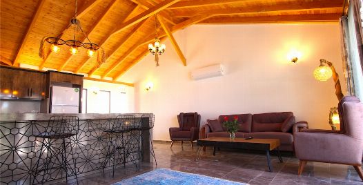 Salon : Villa Myra’nın salonunda sizi şık bir oturma grubu ile klima, televizyon, internet, uydu, koltuk, sehpa ile ferah bir salon bekliyor olacaktır. Havuz terasına çıkış yapılmaktadır.