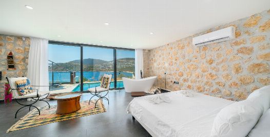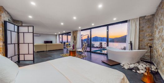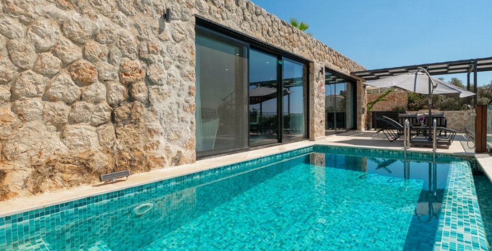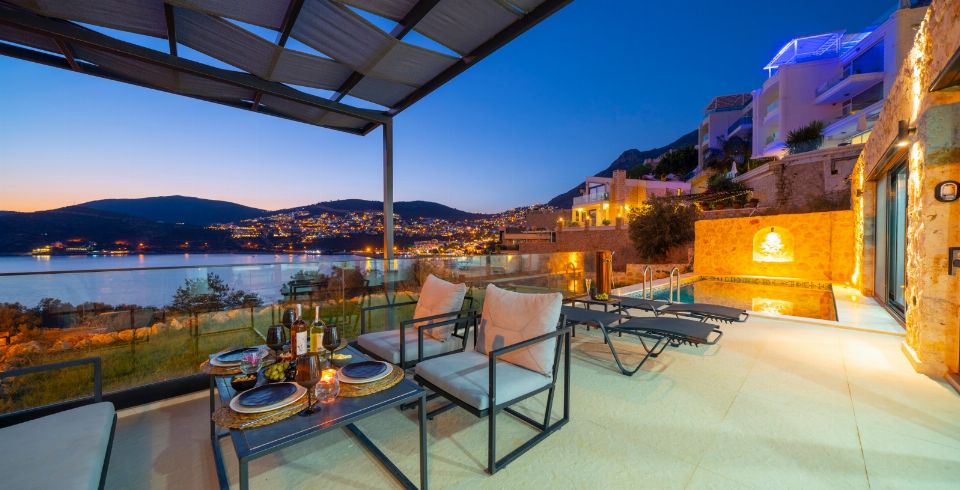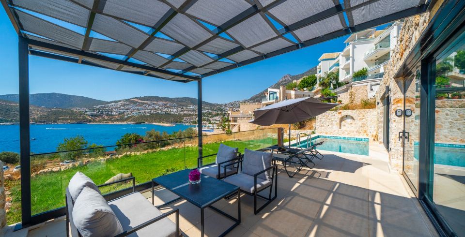 Havuz ve Bahçe : Villamızın havuz terasında şezlong, şemsiye, oturma grubu, barbekü, deniz manzaralı havuz ve havuz terası bulunmaktadır.