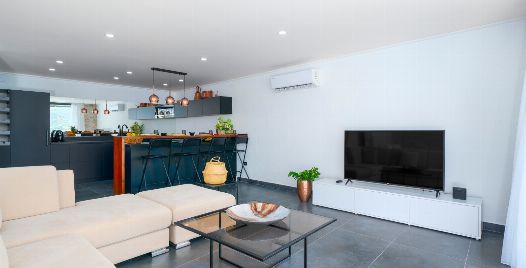 Salon : Kiralık Villamızın Salonunda LCD TV, uydu alıcı, DVD player, modern oturma grubu, yemek masası ve sandalyeler, kablosuz modem bulunmaktadır. Salondan havuz terasına çıkış vardır. Salon havuz katındadır.