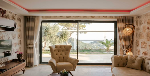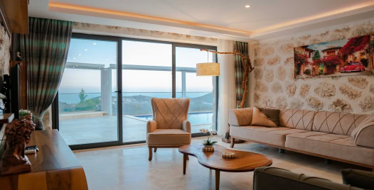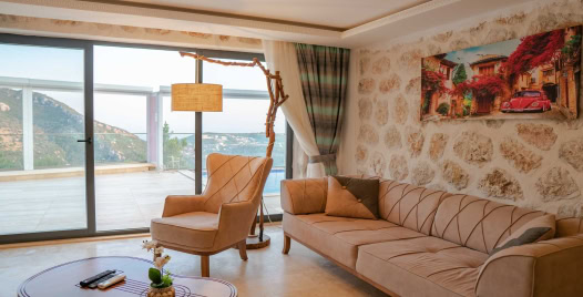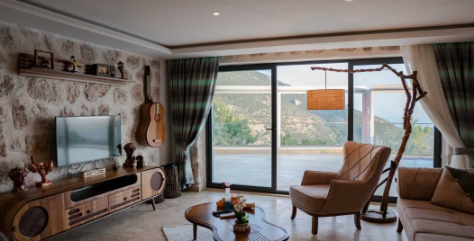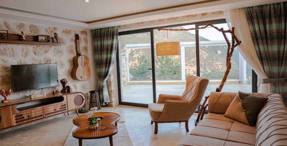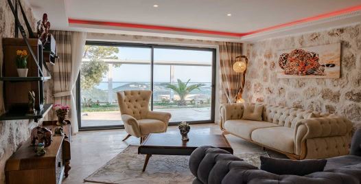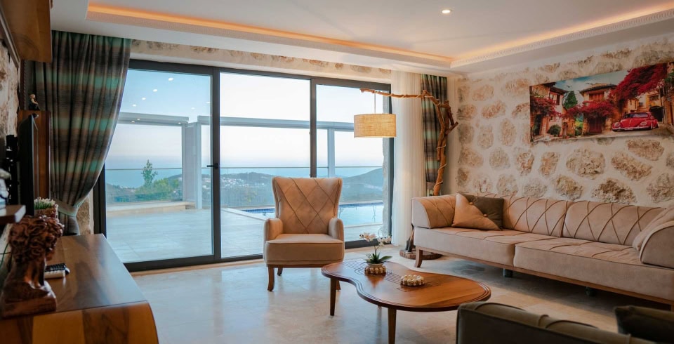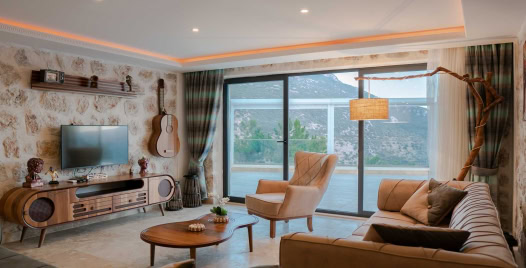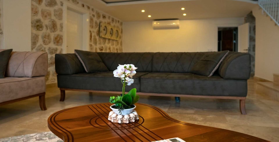 Salon : Villa salonunda oturma grubu, TV, internet, sehpa, klima bulunmaktadır.