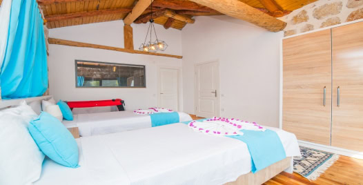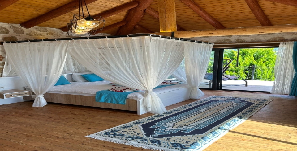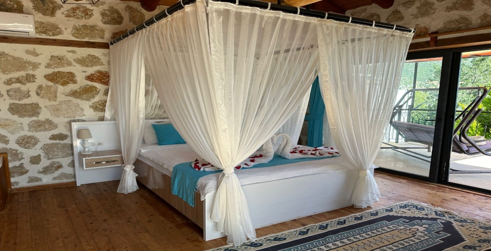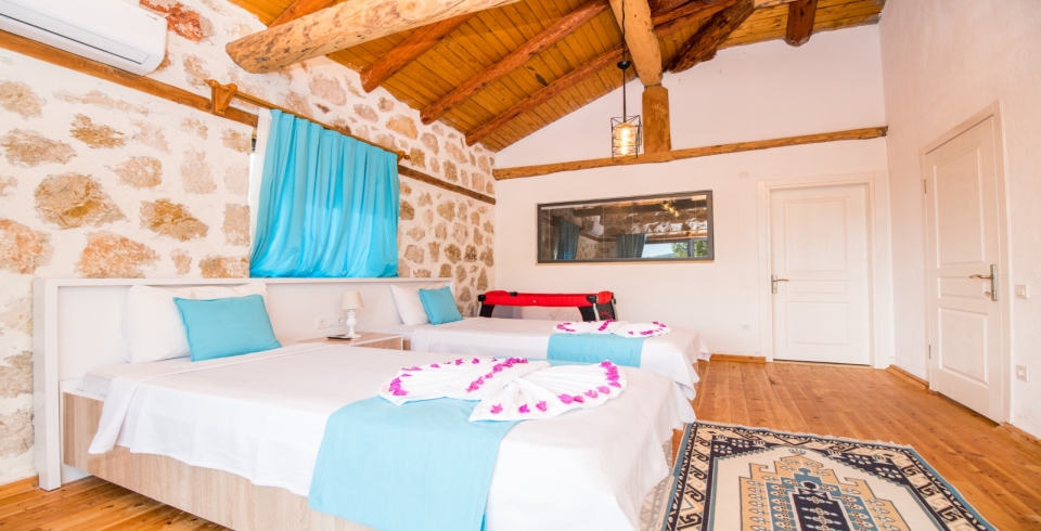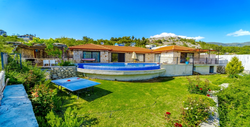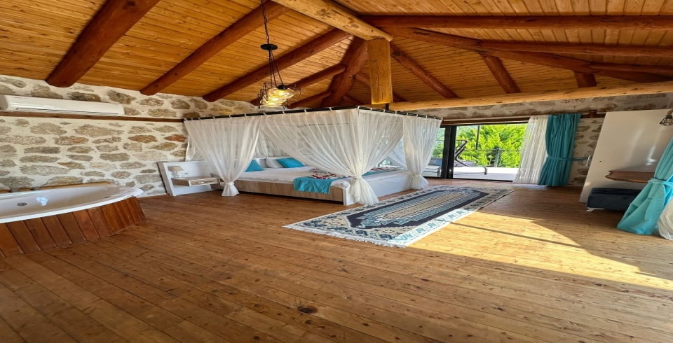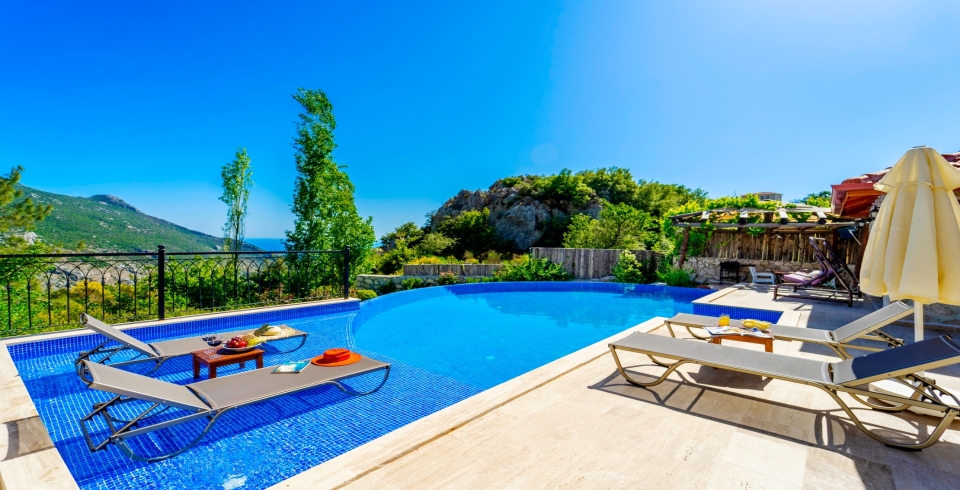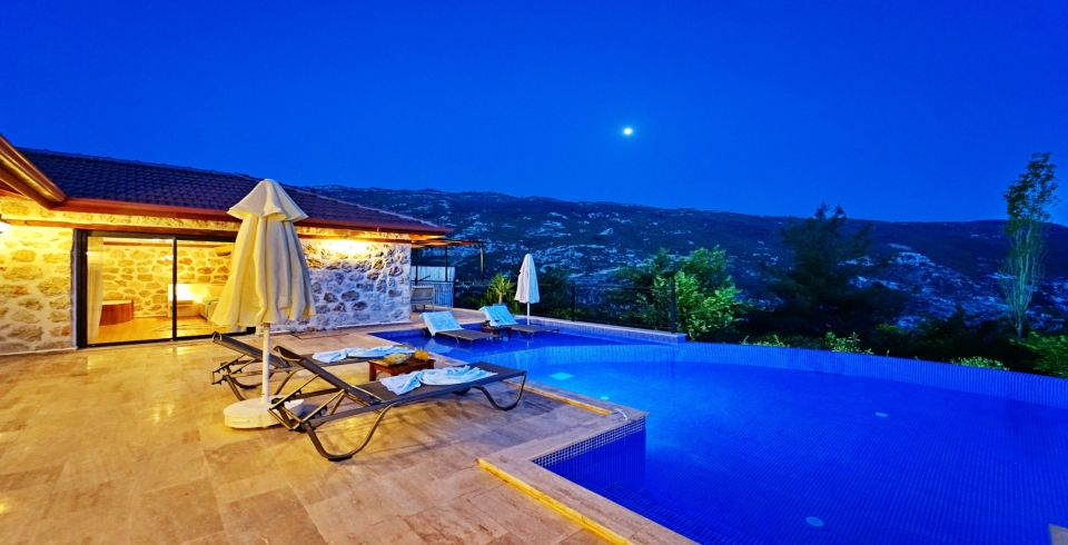Villa Naturel İslamlar, Antalya’nın gözde Kalkan bölgesi, İslamlar mevkiinde yer alıyor ve 4 kişi kapasitesiyle balayı çiftleri ya da küçük aileler için kusursuz bir kaçamak sunuyor. 2 suit yatak odası ve 2 banyosuyla ferah ve mahrem bir konaklama imkanı sağlanmakta; bir odasında jakuzi bulunuyor. Korunaklı özel havuzu, ahşap dekorasyonlu büyük bahçesi ve tahta havuz terası ile doğayla iç içe huzurlu keyif anları vaat ediyor. Modern Amerikan mutfak tam donanımlı; salon kısmında klima, rahat oturma grubu, uydu TV ve havuz terasına çıkış mevcut. Deniz manzaralı havuz kenarı terasında güneşlenmek, açık duş ve şemsiyeler gibi detaylarla tatiliniz konforlu geçecek.