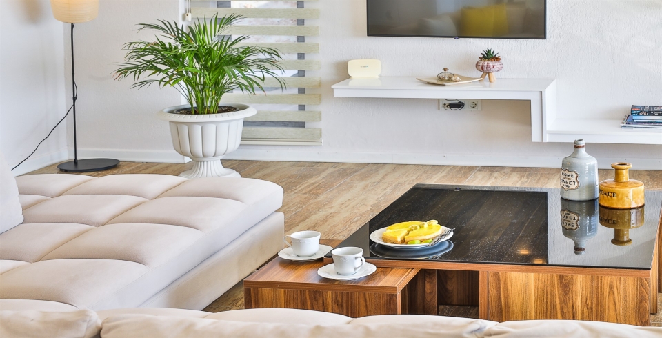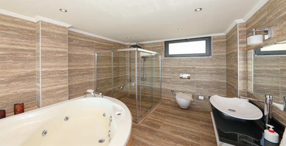 Salon: Manzaralı salonda klima uydu alıcı, TV, DVD Player, oturma grubu, ütü ve ütü masası, lavabo yer almaktadır. Salondan havuz terasına çıkış vardır.