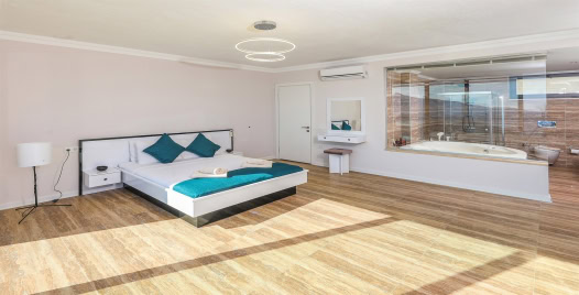 1.Yatak Odası: 1 adet çift kişilik yatak, klima, elbise dolabı, jakuzi, makyaj masası, komodin, banyo ve tuvalet bulunmaktadır. Deniz manzaralı bir balkonu vardır.