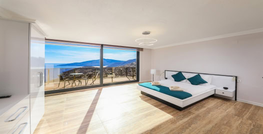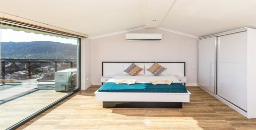 3.Yatak Odası:1 adet çift kişilik yatak, klima, elbise dolabı, makyaj masası, komodin, banyo ve tuvalet bulunmaktadır. Deniz manzaralı bir balkonu vardır.