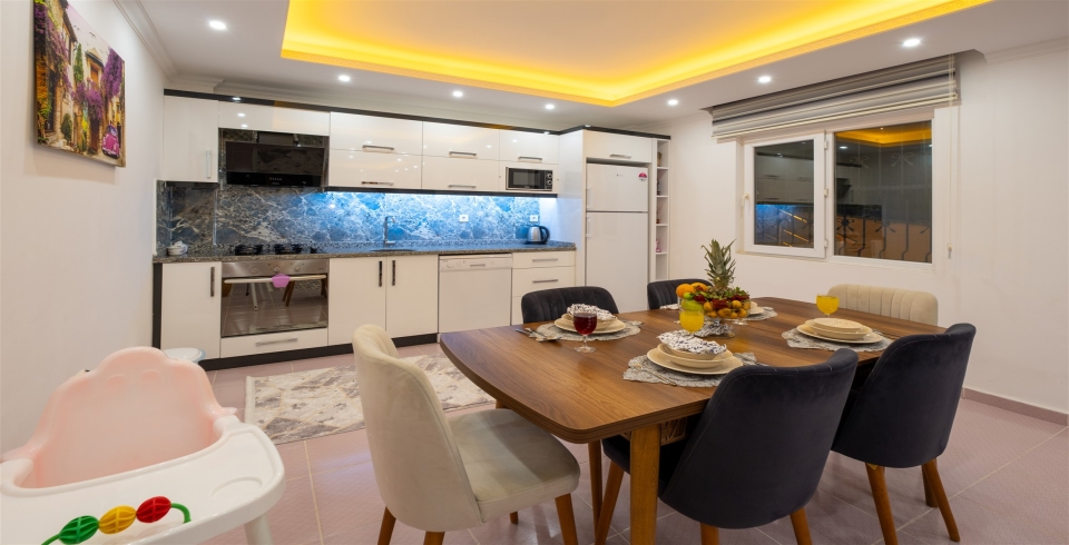 Mutfak: Villamızın mutfağında buzdolabı bulaşık makinası, çamaşır makinası, 4'lü ocak, ketıl, mikro dalga fırın, filtre kahve makinası yemek takımı bulunmaktadır.