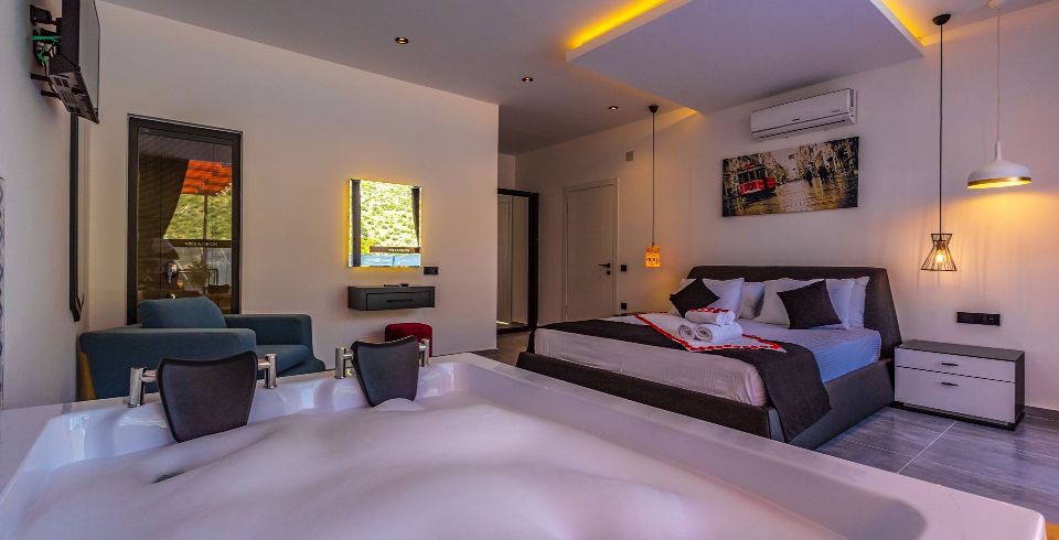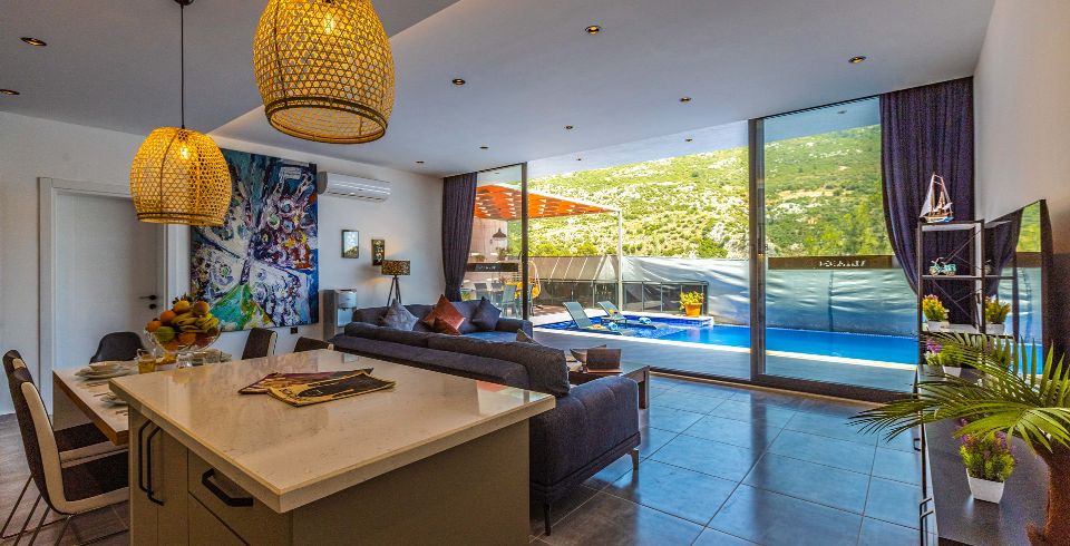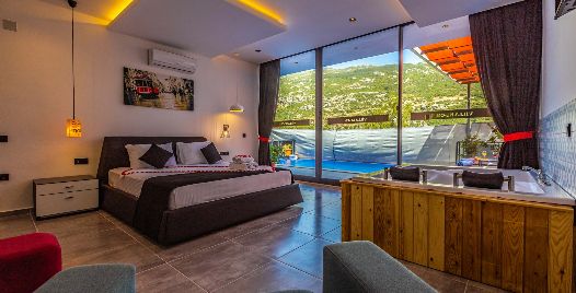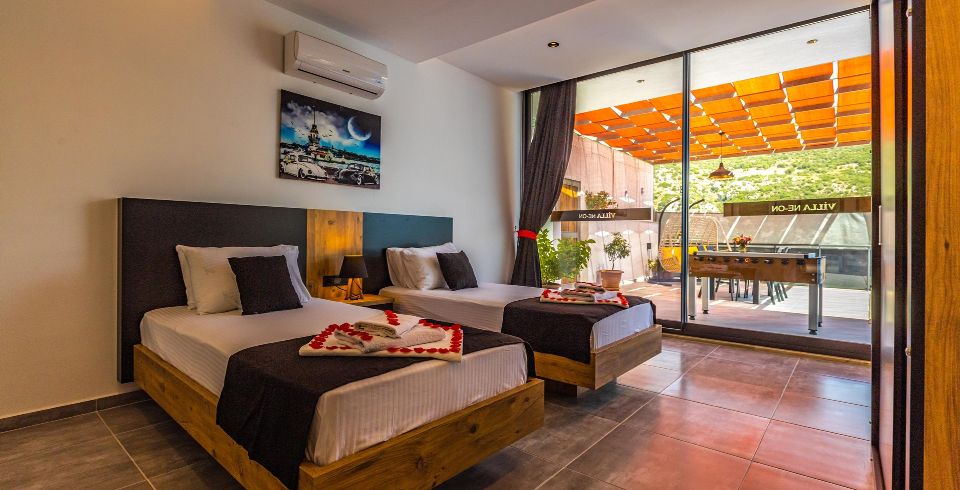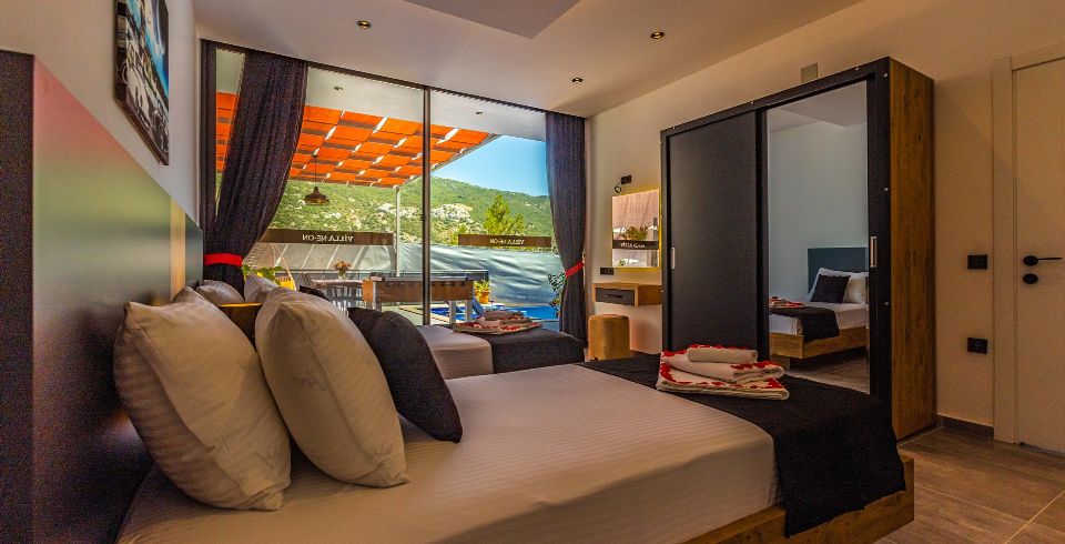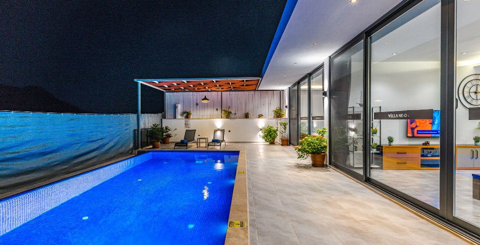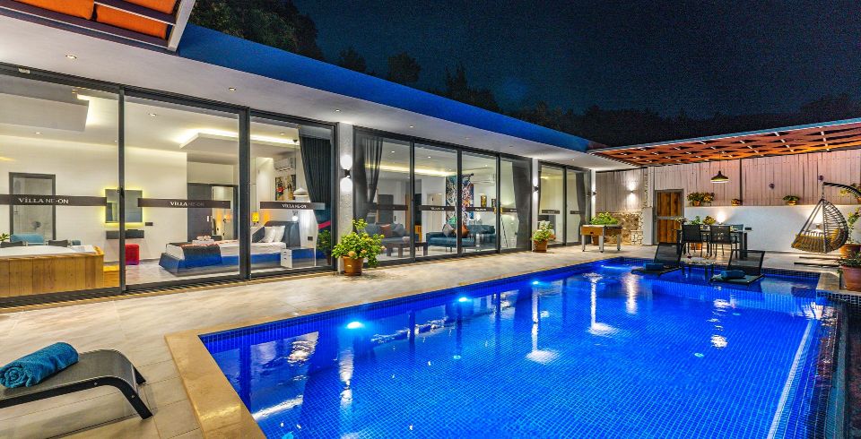Villa Neon Kalkan İslamlar bölgesinde yer almakta olan villamız 2 yatak odalı 4 kişilik kapasiteye sahip olan villamız balayı çiftleri ve çekirdek aileler için ideal seçeneklerimiz arasındadır. Villamız, son derece rahat ve konforlu mobilyalarla dizayn edilmiştir Suit yatak odasında jakuzi bulunmaktadır. Muhafazakar villamızda sizi konuk etmekten mutluluk duyarız.