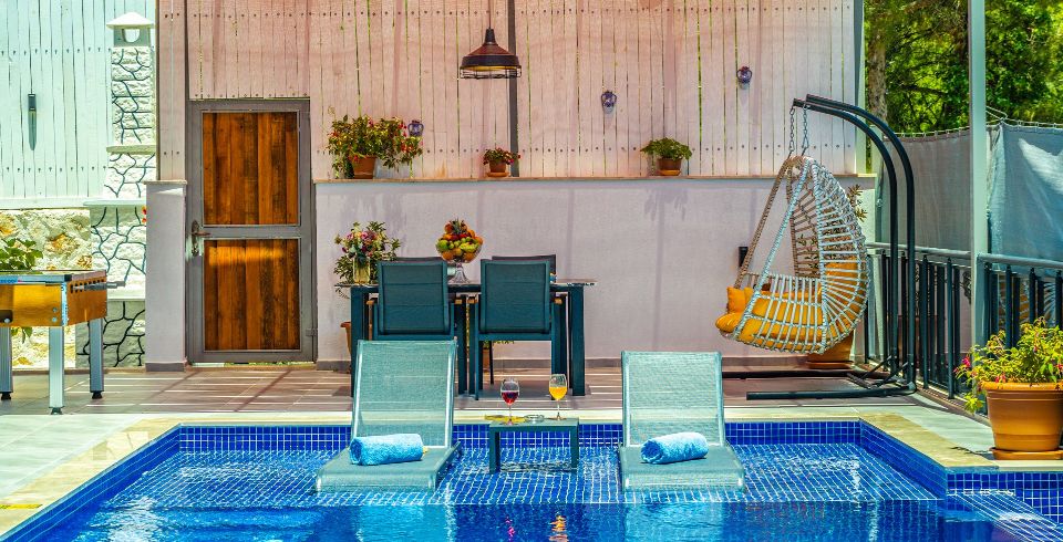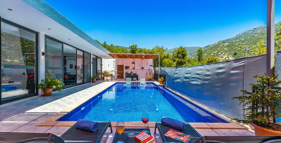 Havuz ve Bahçe: Villamızın havuzu ise etrafı dışarıdan görülmeyecek şekilde korunaklı olup sizlere huzurlu ve keyifli havuz deneyimi sunmaktadır. Bahçe mobilyası, barbekü, salıncak, langırt. dark.,okey takımı, satranç şezlong ve güneş şemsiyesi bulunmaktadır.