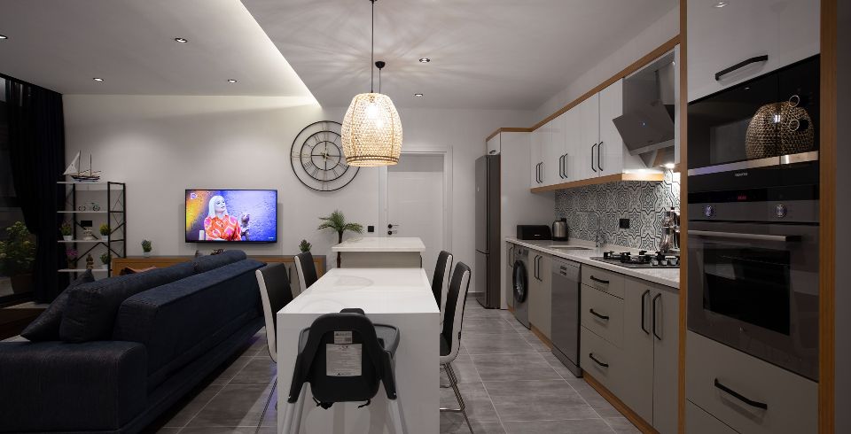 Mutfak : Mutfak bölümümüzde, buzdolabı, bulaşık makinesi, çamaşır makinesi, fırın, çatal & bıçak takımı, yemek takımı, kettle vb. mutfak ekipmanları bulunmaktadır.