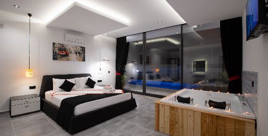 1. Yatak Odası : 1 Adet çift kişilik yatak, komodin, gardırop ebeveyn banyosu, klima, Jakuzi bulunmaktadır.