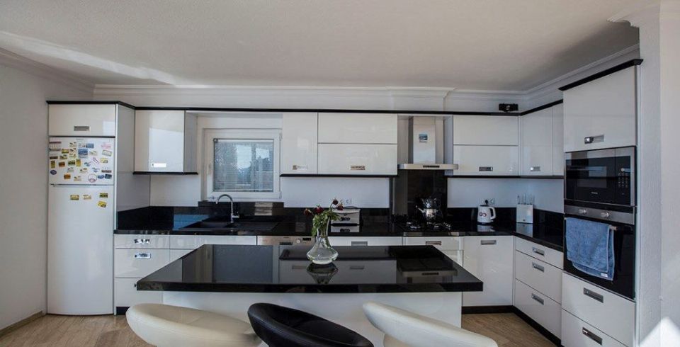 Mutfak: Amerikan mutfak, buzdolabı, bulaşık makinası, çamaşır makinası, kettle, su sebili, 4'lü ankastre ocak, fırın, mikro dalga, bar tezgah, yemek masası ve tüm mutfak araç gereçleri bulunmaktadır.