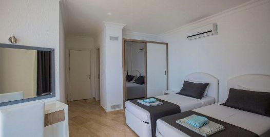 2. Yatak Odası: 2 adet tek kişilik yatak odası, elbise dolabı, klima, komodin, makyaj masası, banyo, tuvalet bulunmaktadır.