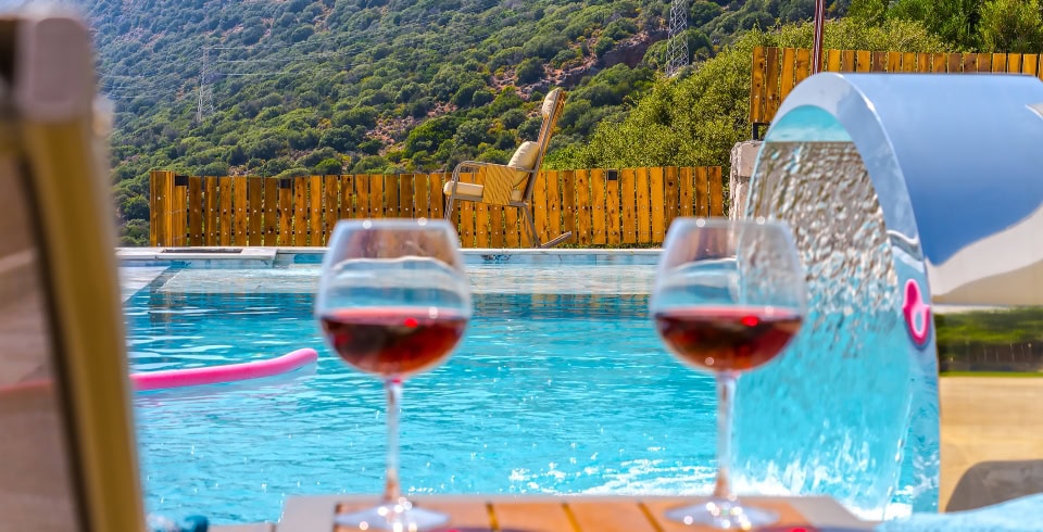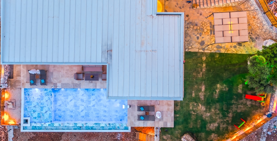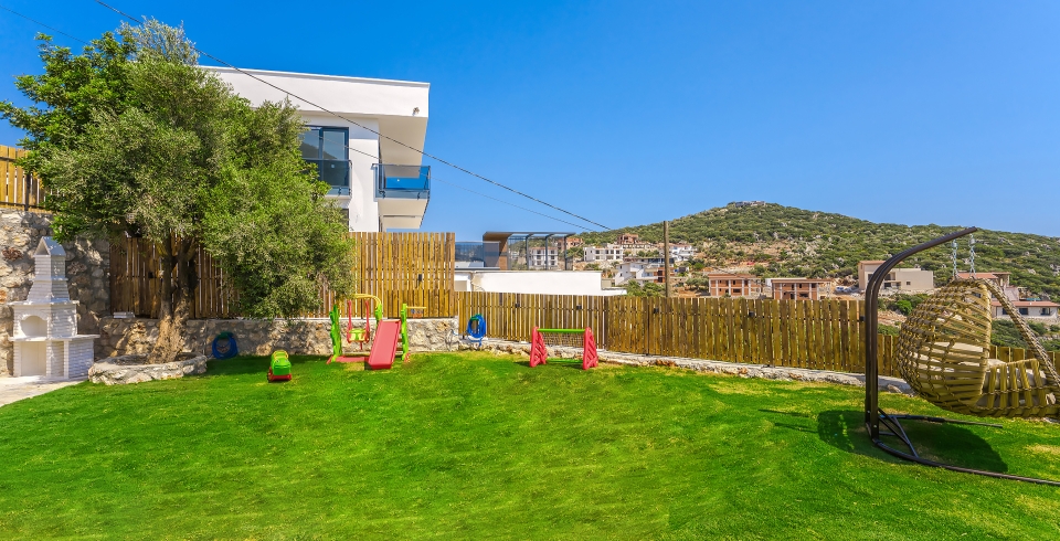 Havuz ve Bahçe: Villamızın Havuz terasında özel yüzme havuzu, şezlonglar, güneş şemsiyesi, masa ve sandalyeler, salıncak, çocuk oyun parkı, barbekü bulunmaktadır.