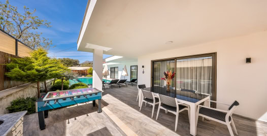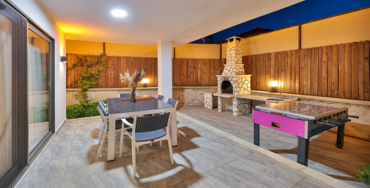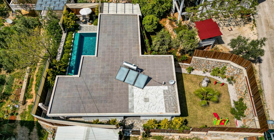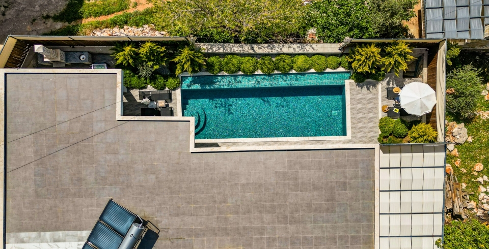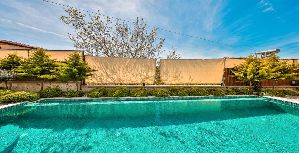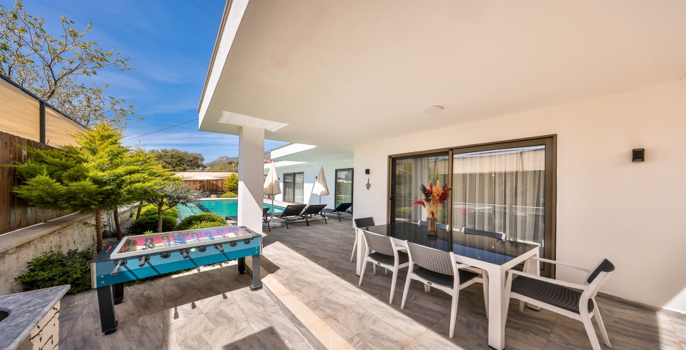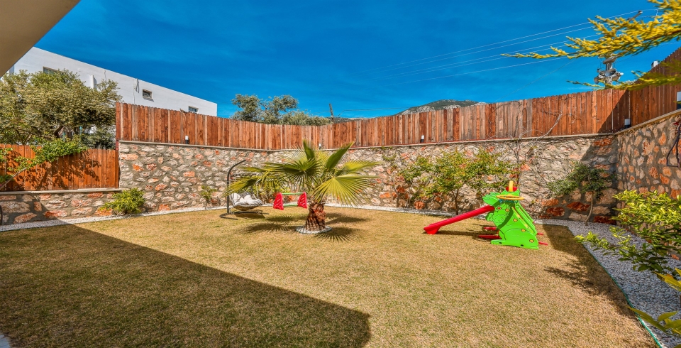Havuz ve Bahçe : Bahçe içerisinde özel yüzme havuzu, şezlonglar, güneş şemsiyesi, salıncak, oyun parkı, langırt, yemek masası, barbekü bulunmaktadır. Villamızın Havuz terası korunaklı olup dışarıdan gözükmemektedir.