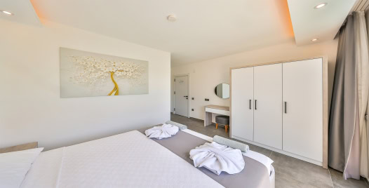 3. Yatak Odası : 2 adet tek kişilik yatak, klima, komodin, elbise dolabı, makyaj masası, banyo ve tuvalet bulunmaktadır.