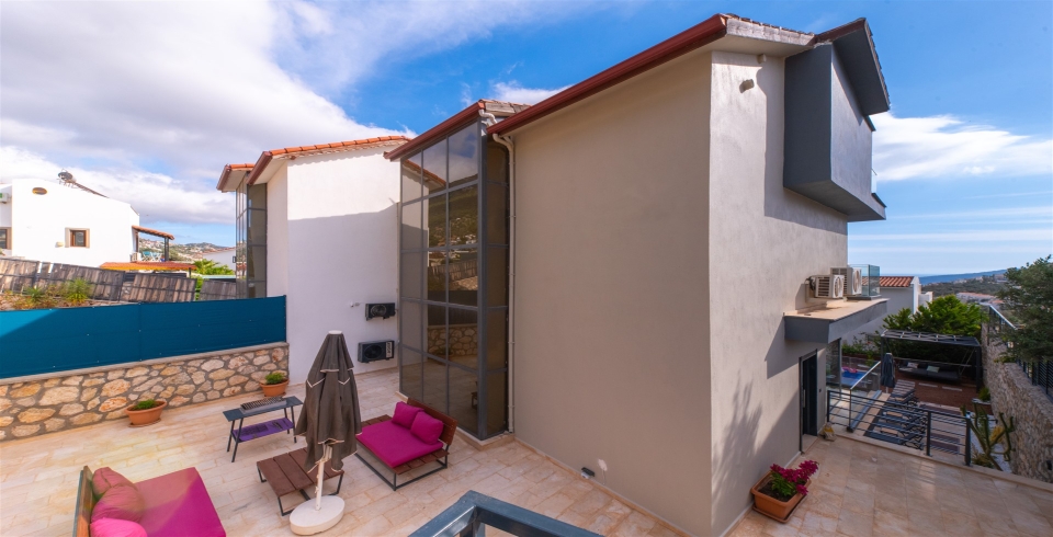 Üst katlardan deniz manzarası sunan villa, ferah yaşam alanları ve şık tasarımıyla dikkat çekiyor. Jakuzisi, tatilinize konfor katarken, denize olan yakınlığı sayesinde plaj keyfini kolayca yaşayabilirsiniz.