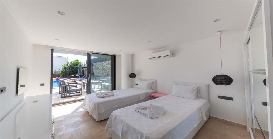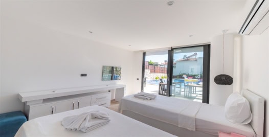 4. Yatak Odası : İki adet tek kişilik yatak, elbise dolabı, komodin, makyaj masası, klima ve banyo bulunmaktadır.