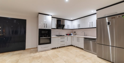 Muftak : Modern mutfakta buzdolabı, bulaşık makinesi, çamaşır makinesi, fırın, ocak, mikrodalga fırın, kahve makinesi, tost makinesi, kettle, yemek takımları, çatal ve bıçak takımları, tencere ve tava takımları, bardaklar bulunmaktadır.