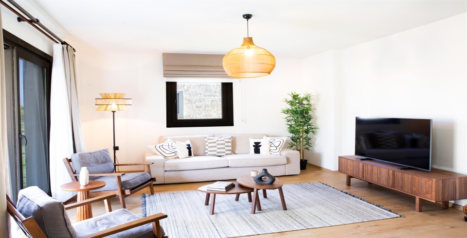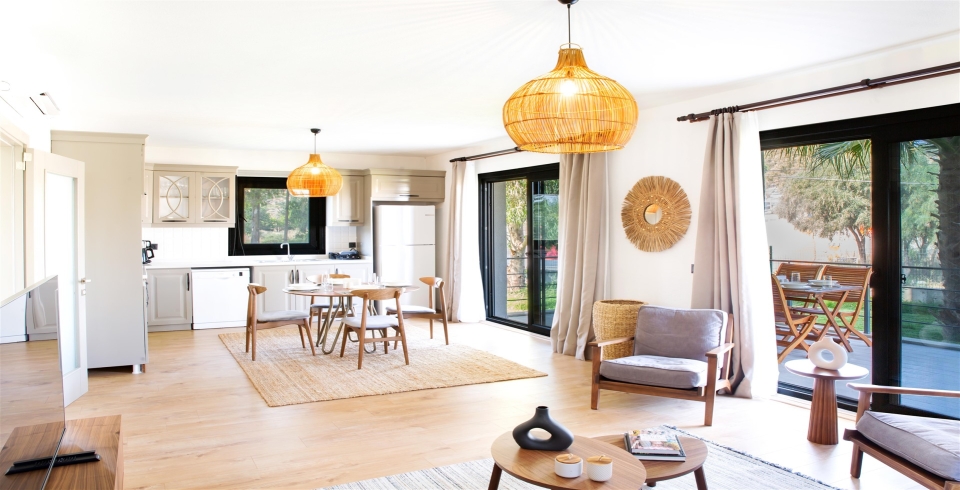 Salon : Salon içerisinde oturma grubu, TV, klima, sehpa bulunmaktadır. Havuz terasına çıkış yapılabilmektedir.