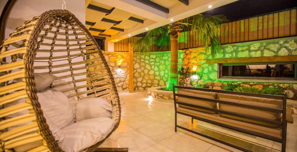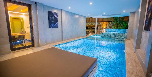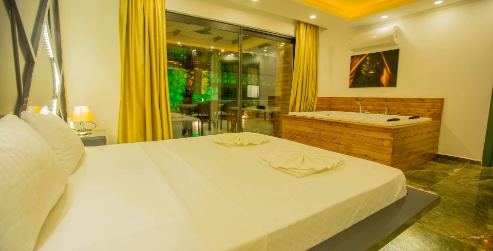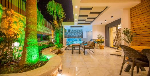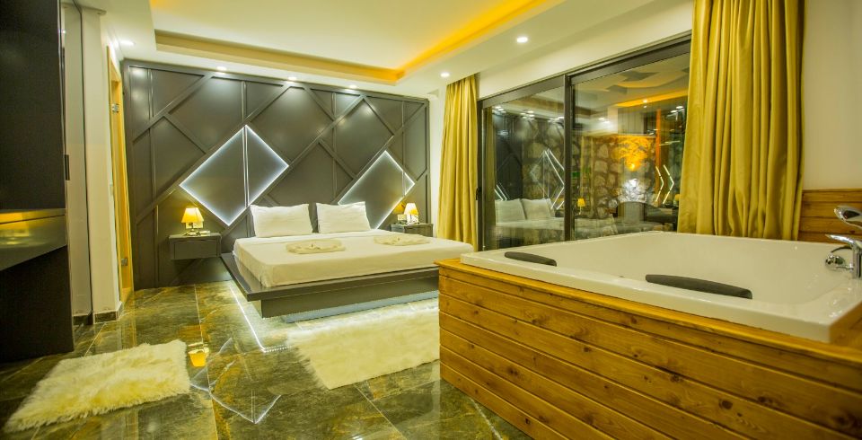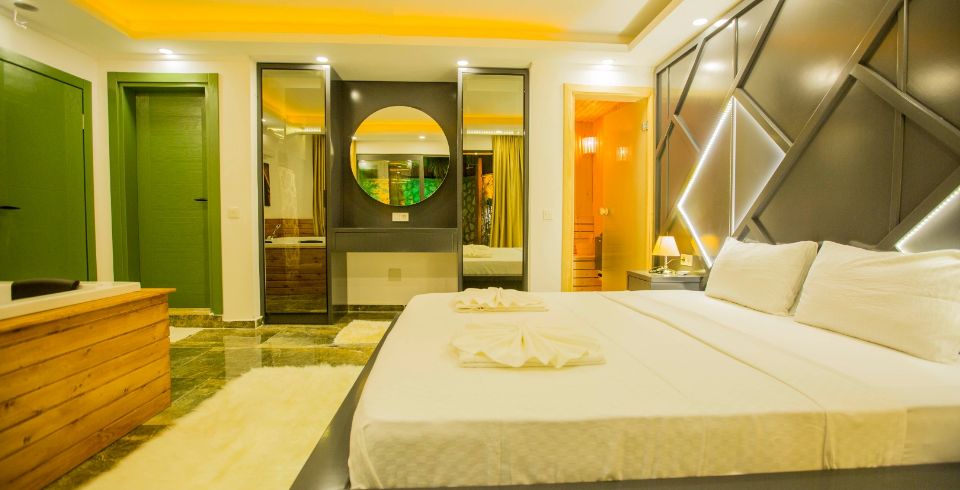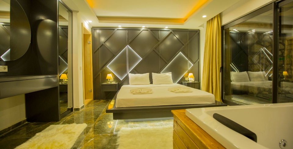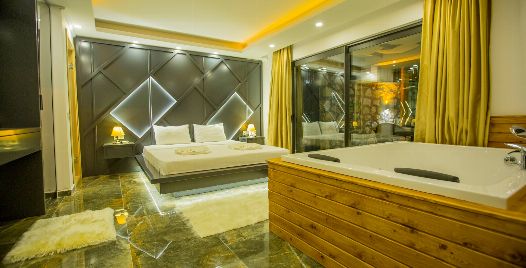Balayı çiftleri için tasarlanmış olan Villa Nil Premium, özel havuzu ve jakuzisiyle romantik bir tatil imkanı sunar. Villanın büyük camlarla kaplı salonu, muhteşem deniz manzarasıyla size eşsiz bir konaklama deneyimi yaşatacaktır. Ayrıca, villanın geniş terası ve bahçesindeki şezlonglarla beraber, rahatlayarak güneşin tadını çıkarabilirsiniz.
