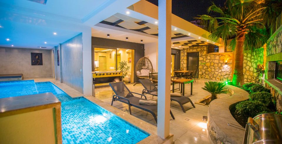 Villa Nil Premium, Kalkan'da yer alan bir lüks villadır. Bu villa, 2 kişilik konaklama imkanı sunar ve balayı çiftleri için mükemmel bir seçenektir.
