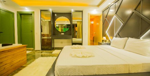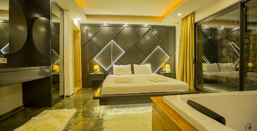 Yatak Odası : 1 adet çift kişilik yatak, klima, jakuzi, gardırop, makyaj masası, komodin, TV, tuvalet banyo bulunmaktadır.