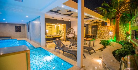 Havuz ve Bahçe : Villamızın geniş bahçe alanında özel yüzme havuzu, barbekü, yemek masası, modern oturma alanı, oturma grubu, şezlong, şemsiye, salıncak ve langırt bulunmaktadır