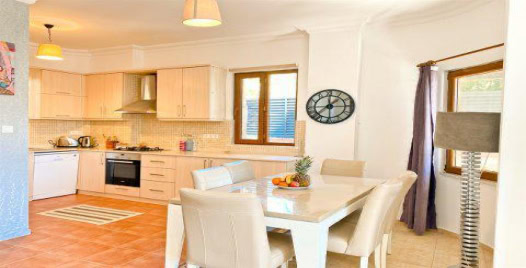 Mutfak: Buzdolabı, çamaşır makinesi, bulaşık makinesi, ankastre fırın, mikrodalga fırın, yemek takımı, mutfak araç gereçleri ve ayrıca havuz terasına çıkış bulunmaktadır.
