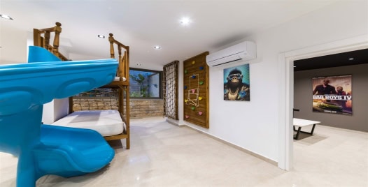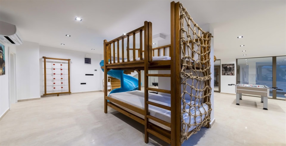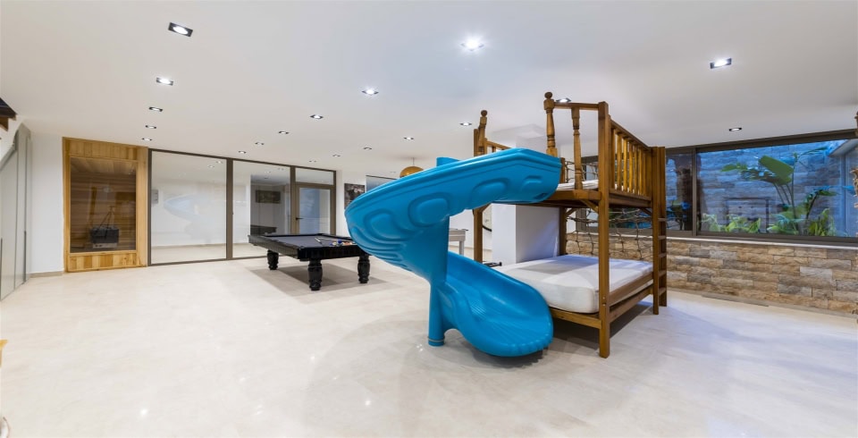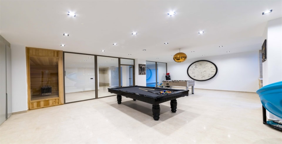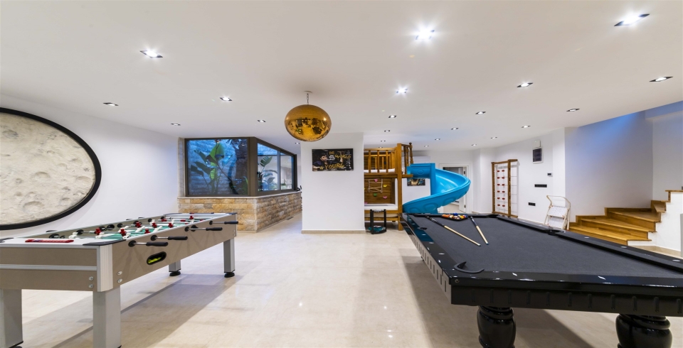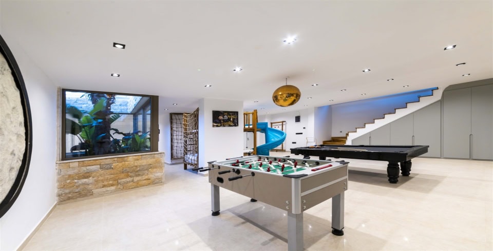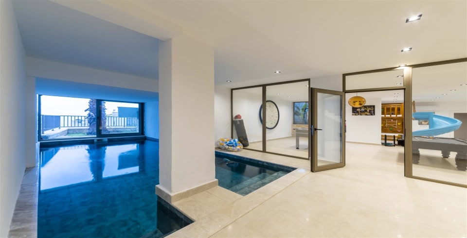 Bu eşsiz villa, kapalı havuzu, jakuzi, sauna ve hamamı ile tatilinize beş yıldızlı bir spa atmosferi katarken, spor salonu sayesinde tatilde de aktif kalmanıza olanak tanıyor. Eğlence dolu anlar yaşamak isteyenler için özel sinema salonu, bilardo masası, langırt ve masa tenisi bulunuyor, böylece her anınızı keyifle değerlendirebilirsiniz.