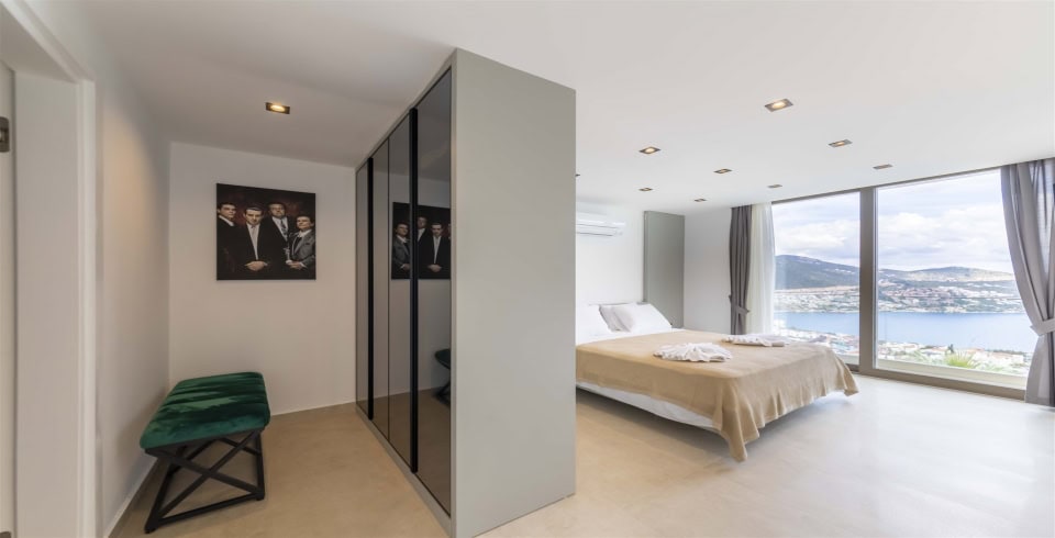 1. Yatak Odası : Çift kişilik bir adet yatak , deniz manzaralı balkon, elbise dolabı, komodin, küvet , klima, banyo ve tuvalet yer almaktadır.
