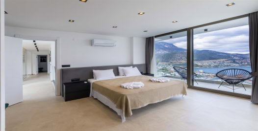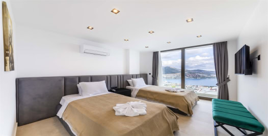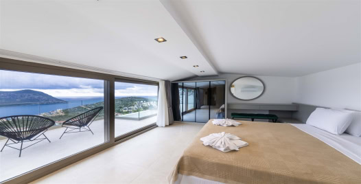 3. Yatak Odası : Çift kişilik bir adet yatak , deniz manzaralı balkon, elbise dolabı, komodin, klima, banyo ve tuvalet yer almaktadır.