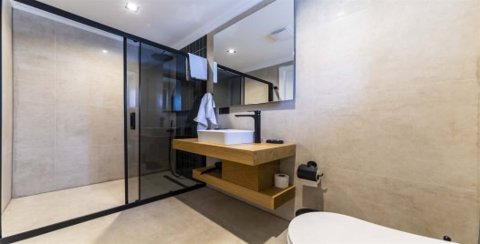 6. Yatak Odası : Tek kişilik iki adet yatak, deniz manzaralı balkon, elbise dolabı, komodin, klima, banyo ve tuvalet yer almaktadır.