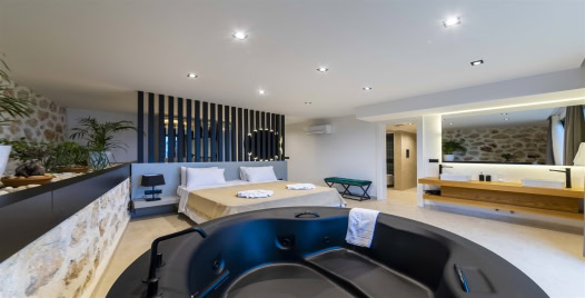 2. Yatak Odası : Çift kişilik bir adet yatak , deniz manzaralı balkon, elbise dolabı, komodin, jakuzi, klima, banyo ve tuvalet yer almaktadır.