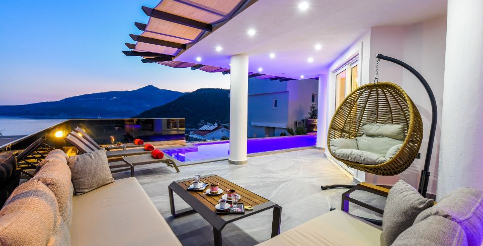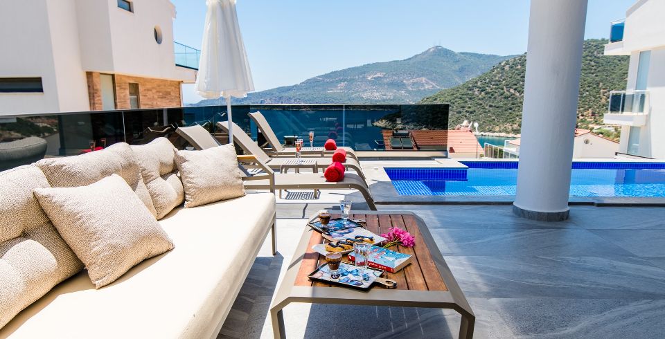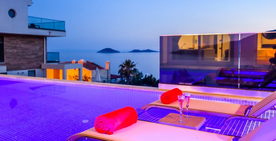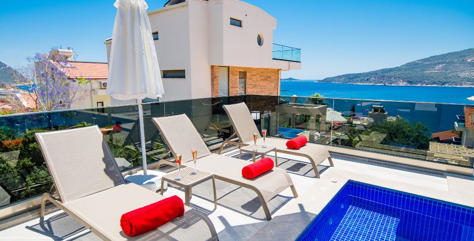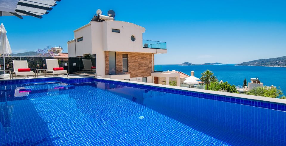 Kalkan Kalamar bölgesinde 3 Yatak Odalı 6 kişilik villamız 2021 yılında tamamlanmış olup deniz ve ada manzarasına sahip kiralık villamızdır. Özel havuzlu villamız aile ve arkadaş gurupları için ideal seçeneklerimizden biridir. Villamız ters dublekstir. Villamızda hamam , sauna ,masa tenisi ,koşu bandı , langırt bulunmaktadır. Modern bir villa olup size konforlu bir tatil sunmaktadır.