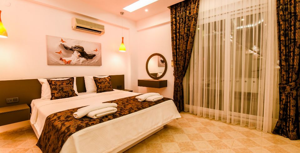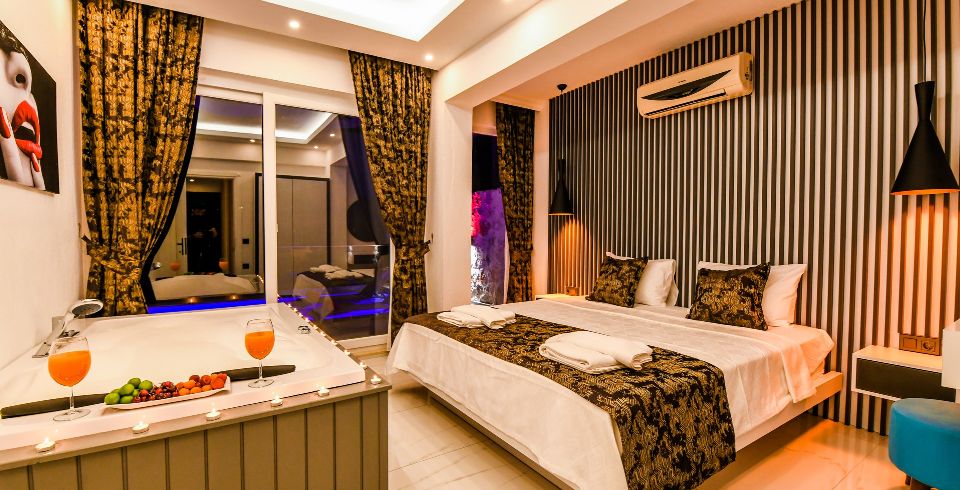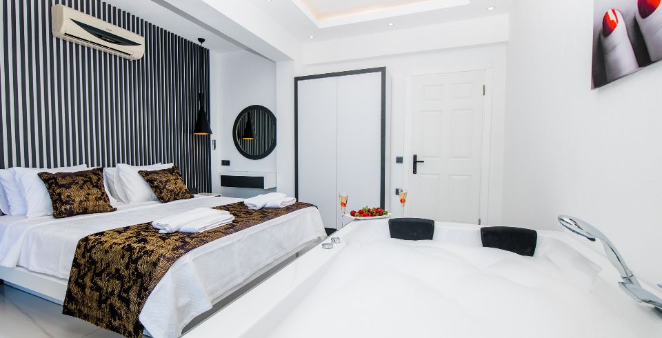 1: Yatak Odası: Çift kişilik yatak, klima, jakuzi, komodin, elbise dolabı, makyaj masası ortak banyo ve tuvalet bulunmaktadır.