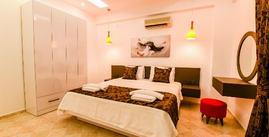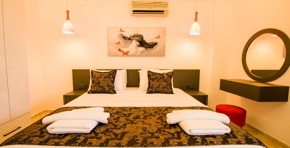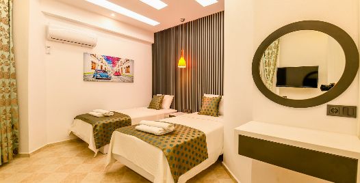 3: Yatak Odası: 2 adet tek kişilik yatak, klima, komodin, elbise dolabı, makyaj masası ortak banyo ve tuvalet bulunmaktadır.