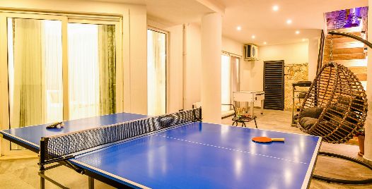 Havuz ve Bahçe: Havuz ve bahçesi korunaklı olup dışarıdan gözükmemektedir. Özel yüzme havuzu, salıncak , langırt, masa tenisi, koşu bandı, şezlong, şemsiye, yemek masası ve barbekü bulunmaktadır.