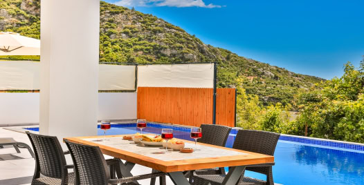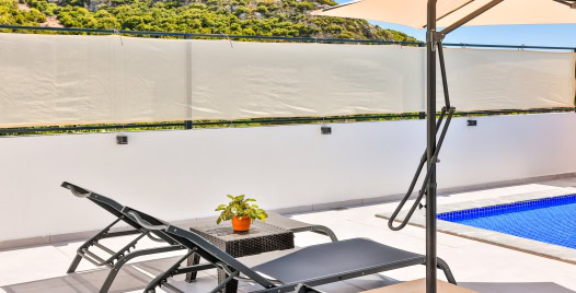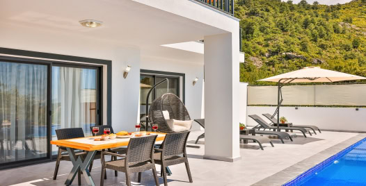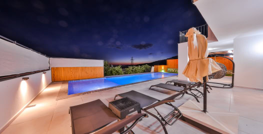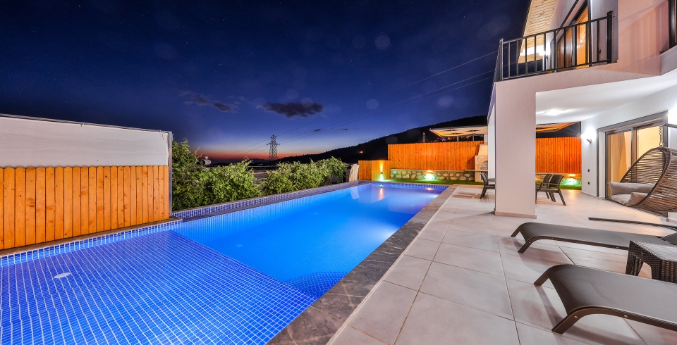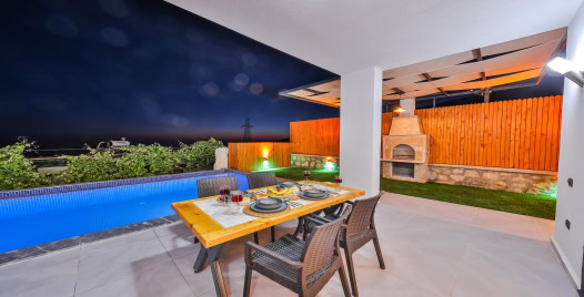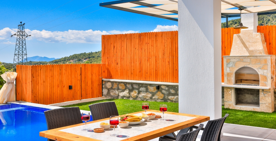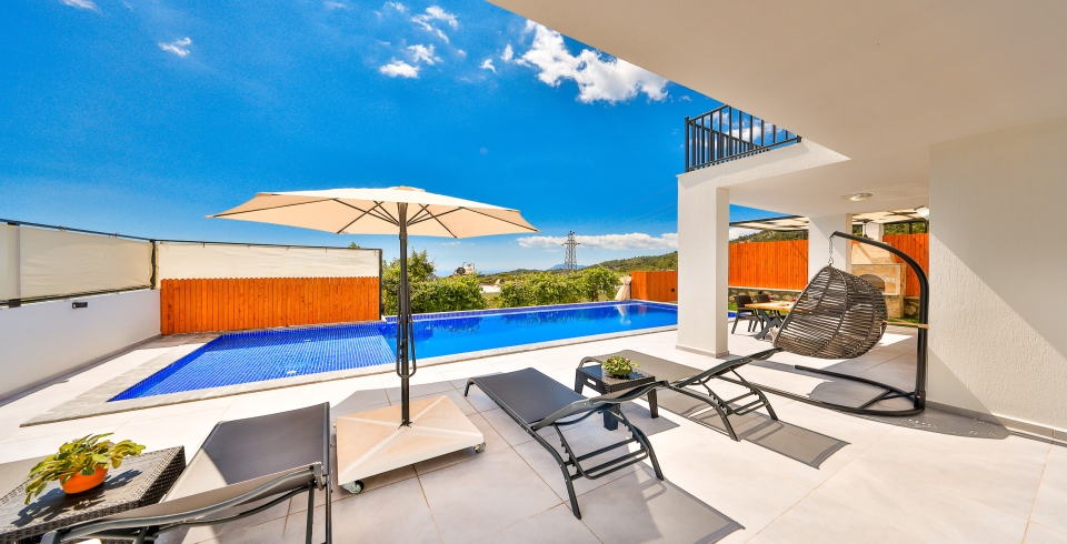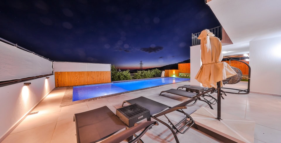 Havuz ve Bahçe : Villamız korunaklı olduğundan dışarıdan görünmemektedir. 1.50 santimetre sığ özel yüzme havuzunun içinde şezlong bulunan bahçemizde ekstra şezlonglar, şemsiye, yemek masası, salıncak ve barbekü alanı bulunmaktadır.